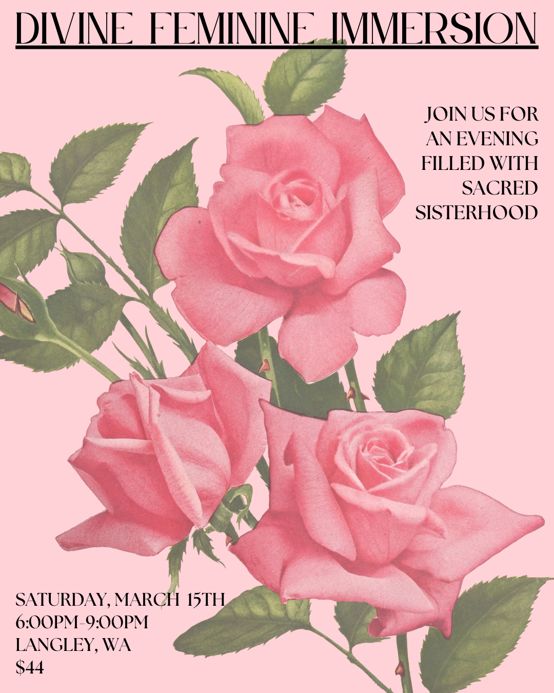 We will gather on Saturday, March 15th, 6-9pm, in Langley, WA to bring our magic together to celebrate the Divine Feminine within us all.