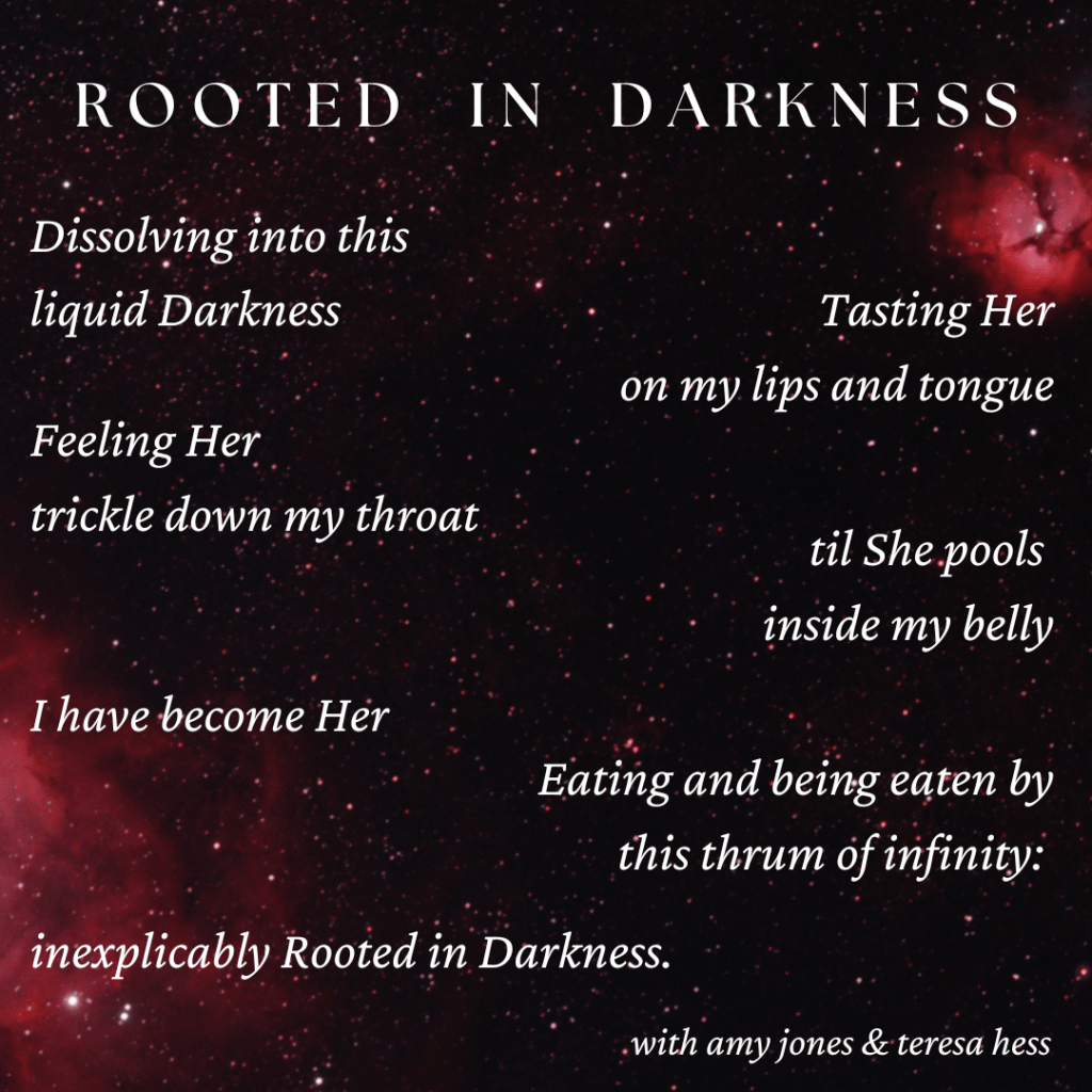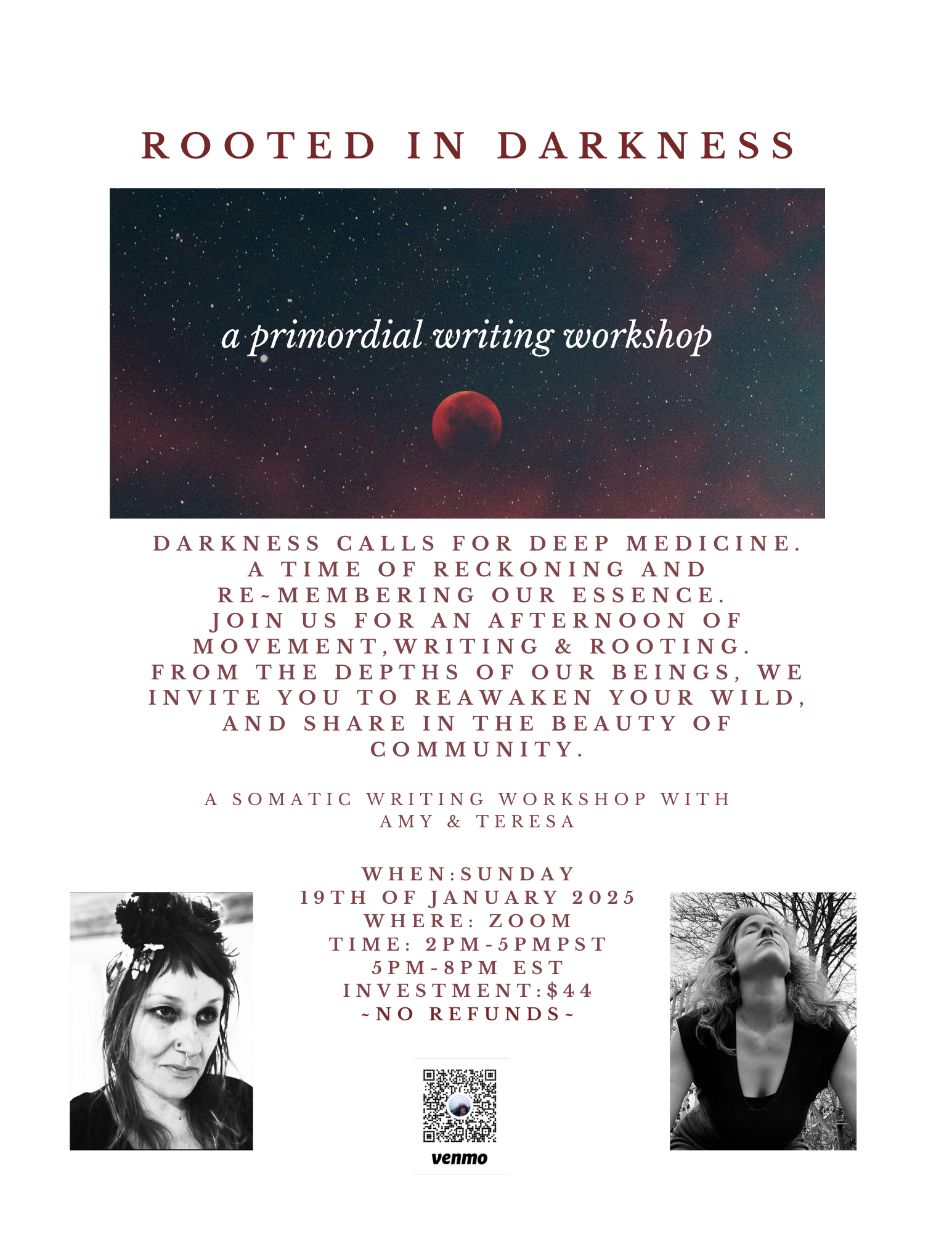 If you are curious to explore what happens when you surrender into the Darkness, curl up inside it, meet it in your bones & in your marrow,